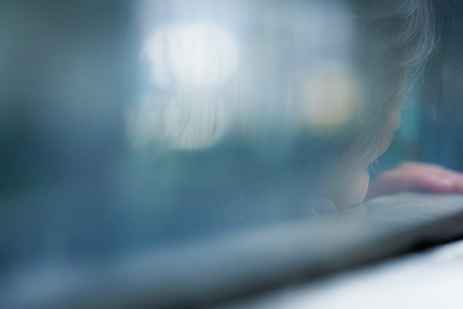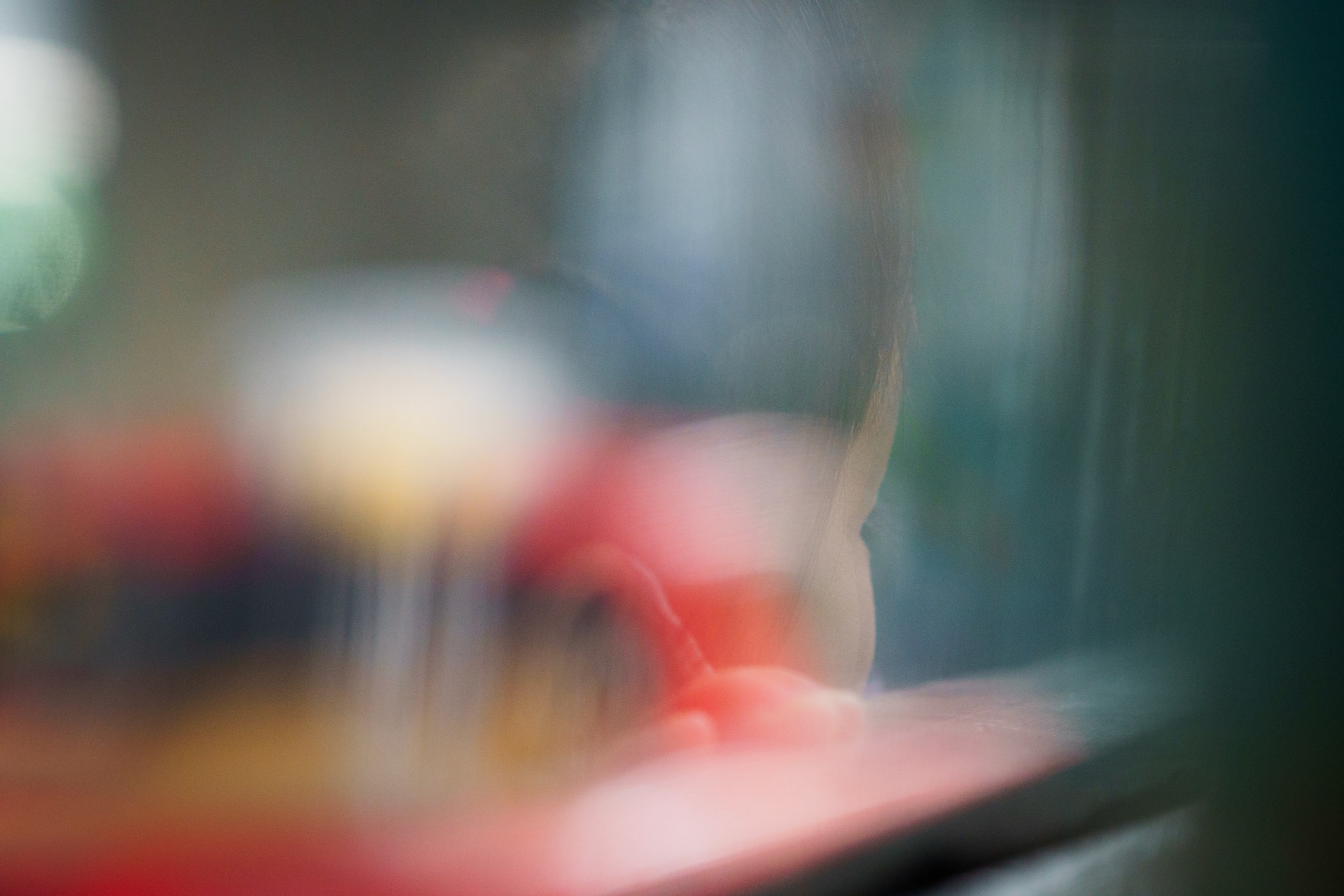The universe gave me this reflection of a child leaning on the bus window the moment I decided to take the bus one day. Vehicular lights and the morning sun has intensified her ethereal contemplation while looking outside. The window had dry smudges that turned into this abstract space around.